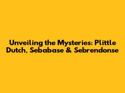 Unveiling The Mysteries: Plittle Dutch, Sebabase & Sebrendonse