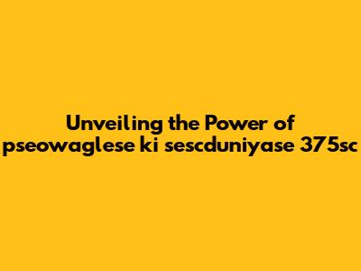 Unveiling The Power Of Pseowaglese Ki Sescduniyase 375sc