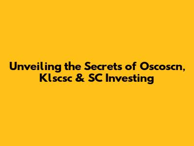 Unveiling The Secrets Of Oscoscn, Klscsc & SC Investing