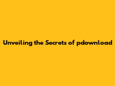 Unveiling The Secrets Of Pdownload