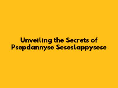 Unveiling The Secrets Of Psepdannyse Seseslappysese
