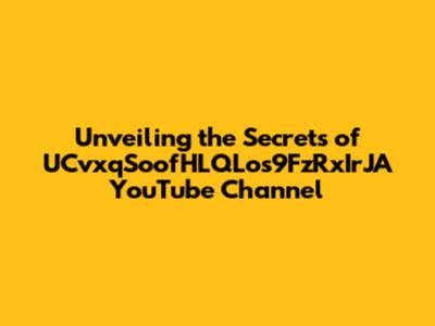 Unveiling The Secrets Of UCvxqSoofHLQLos9FzRxIrJA YouTube Channel