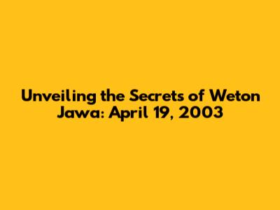 Unveiling The Secrets Of Weton Jawa: April 19, 2003