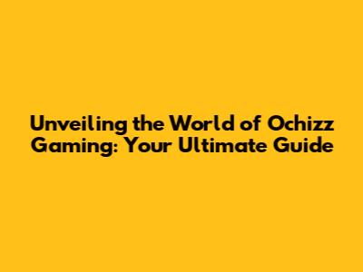 Unveiling The World Of Ochizz Gaming: Your Ultimate Guide
