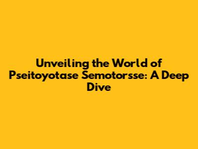 Unveiling The World Of Pseitoyotase Semotorsse: A Deep Dive