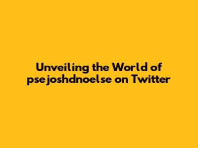 Unveiling The World Of Psejoshdnoelse On Twitter