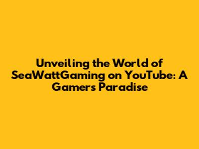 Unveiling The World Of SeaWattGaming On YouTube: A Gamer's Paradise