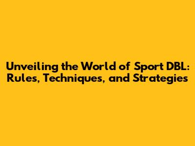 Unveiling The World Of Sport DBL: Rules, Techniques, And Strategies