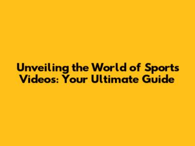 Unveiling The World Of Sports Videos: Your Ultimate Guide
