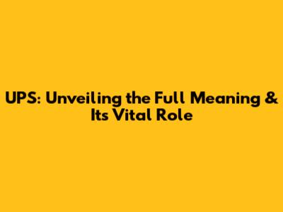 UPS: Unveiling The Full Meaning & Its Vital Role