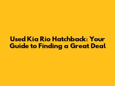 Used Kia Rio Hatchback: Your Guide To Finding A Great Deal