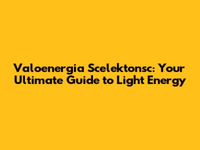 Valoenergia Scelektonsc: A Comprehensive Guide