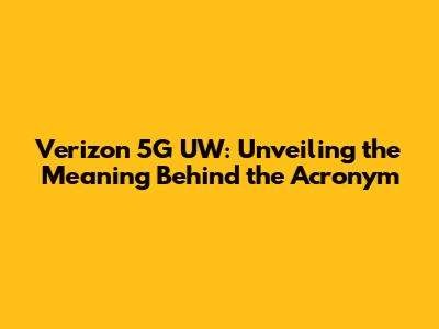 Verizon 5G UW: Unveiling The Meaning Behind The Acronym