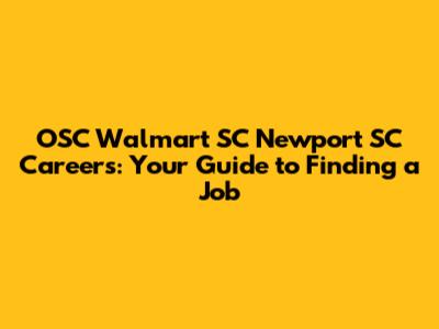 • Indeed: Indeed.com is a popular job search engine that aggregates listings from various sources, including company websites and recruitment agencies. Search for "Walmart Newport SC" to see if any OSC positions are listed.
