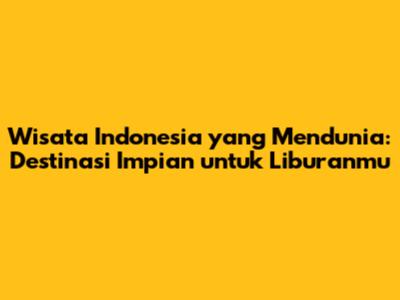 Wisata Indonesia Yang Mendunia: Destinasi Impian Untuk Liburanmu