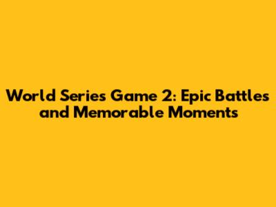 World Series Game 2: Epic Battles And Memorable Moments