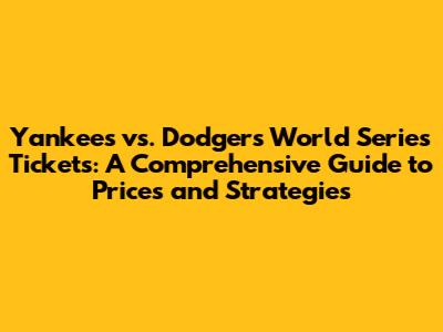 Understanding the Factors Influencing Yankees vs. Dodgers World Series Ticket Prices