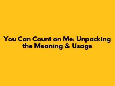 You Can Count On Me: Meaning & Usage Explained
