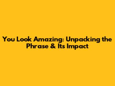 You Look Amazing: Unpacking The Phrase & Its Impact