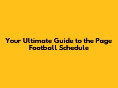 Your Ultimate Guide To The Page Football Schedule