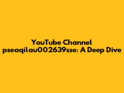 YouTube Channel Pseaqilau002639sse: Unveiling The Content