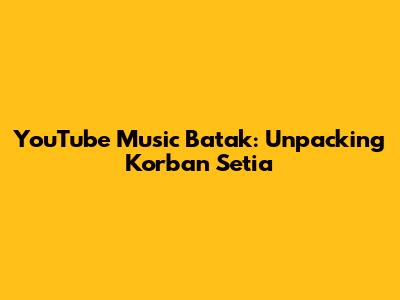 YouTube Music Batak: Exploring 'Korban Setia' And Its Cultural Impact